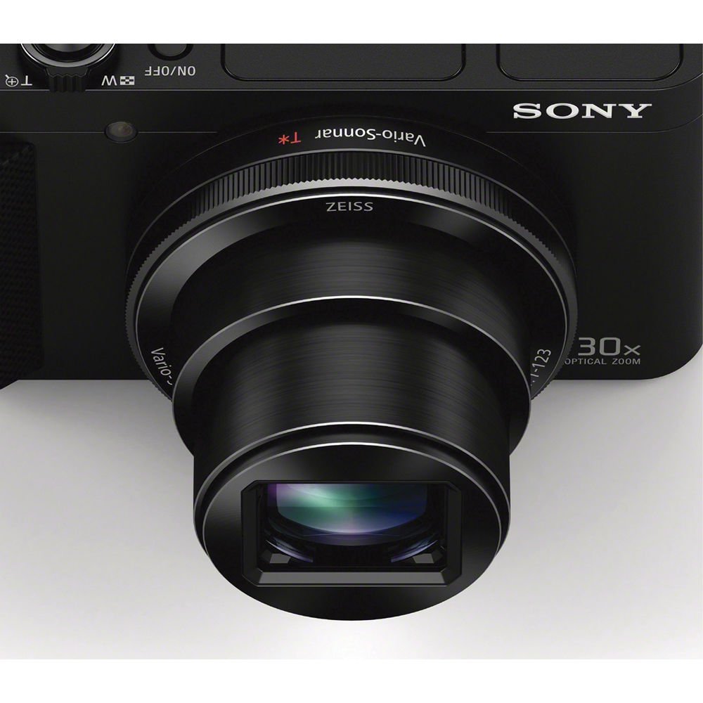 The Cyber-shot DSC-HX90V Digital Camera from Sony has an 18.2MP BSI Exmor R CMOS Sensor and a powerful 30x optical zoom lens. In combination with the BIONZ X image processor, the sensor provides sharp imaging and fast autofocus speeds. The 30x optical zoom Zeiss Vario-Sonnar lens has a 35mm focal length equivalency of 24-720mm which covers a full range of shooting situations from wide angle to telephoto. In addition, the camera has 60x digital zoom to allow you to effectively double the optical zoom range for distant image capture. A 638k-dot OLED electronic viewfinder provides an easy way to shoot at eye level, while a 180° tilting 3.0″ 921k-dot LCD screen lets you shoot at different unique angles.