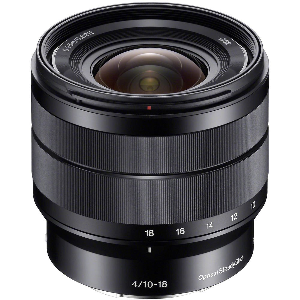 Take on ultra-wide landscapes or tight interiors with your APS-C-format E-mount camera by using the E 10-18mm f/4 OSS Lens from Sony. Delivering a super wide 15-27mm equivalent zoom range, and offering a constant f/4 aperture, this lens can produce high-quality images in a variety of difficult scenarios. The implementation of one Super ED and three aspherical elements further guarantees image quality by minimizing aberrations throughout the range. Also, the lens is equipped with Optical SteadyShot image stabilization for reducing the effects of camera shake.