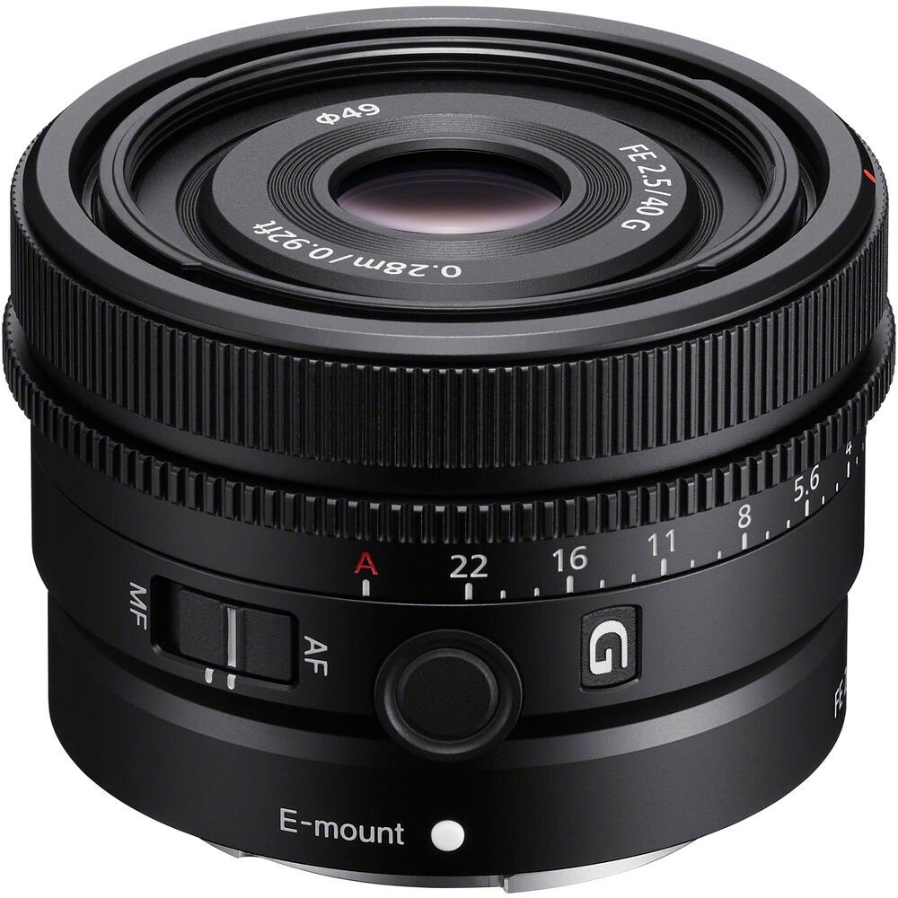 A classic wide normal focal length prime lens, the FE 40mm f/2.5 G from Sony is characterized by its ultra-compact form factor. The versatile focal length suits shooting everything from street to landscapes, portraiture, and documentary subjects, and it features an advanced optical design for well-corrected imagery with a high degree of sharpness and clarity. Additionally, the ultra-compact form factor makes it effortless to have handy at any time.